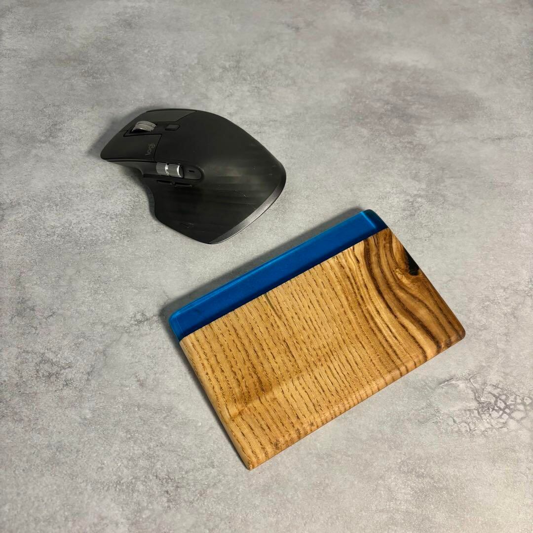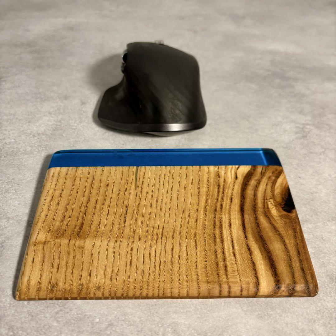 美しい木目を持つ木材と洗練された輝きを放つレジンで織りなすウッドレジン製のマウス用アームレストです。小さな工房で丁寧に仕上げた一点物になります。