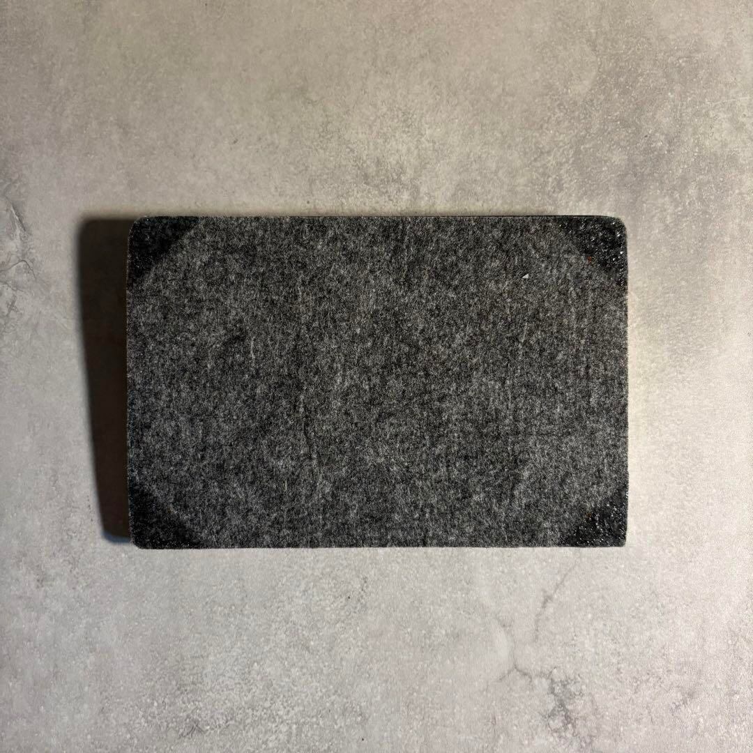このアームレストには、フローレスレジンと無垢の木材を使用しています。裏面にはフェルト生地を施し、高級感とクッション性をプラスしました。デスクの傷を防ぐだけでなく、サイドの滑り止め加工により安定感も向上させています。
