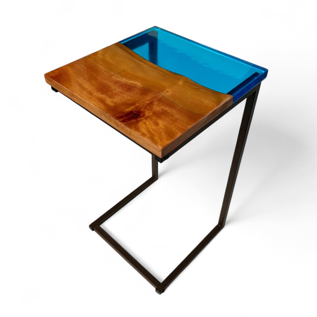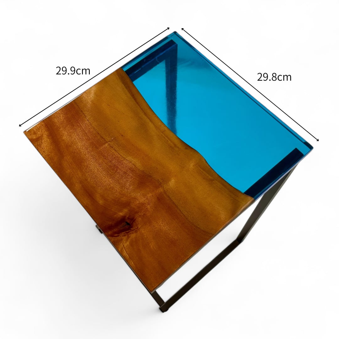美しい木目を持つ木材と洗練された輝きを放つレジンで織りなすウッドレジン製のサイドテーブルです。小さな工房で丁寧に仕上げた一点物です。