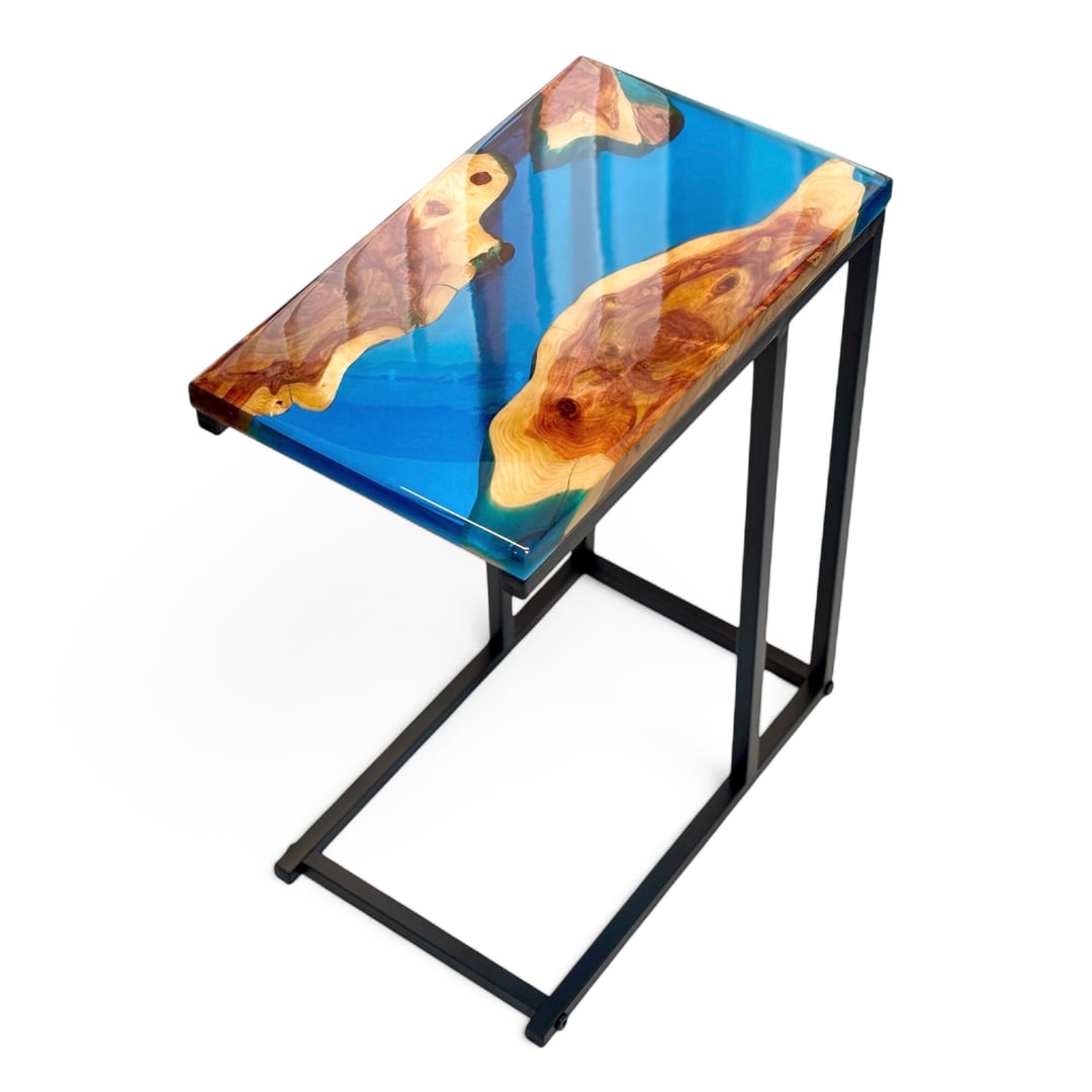 サイドテーブル レジン リバー アイアン 無垢材 木製 天然木 一枚板 コの字 おしゃれ アンティーク ベッド ミニ 高さ50cm 北欧 モダン