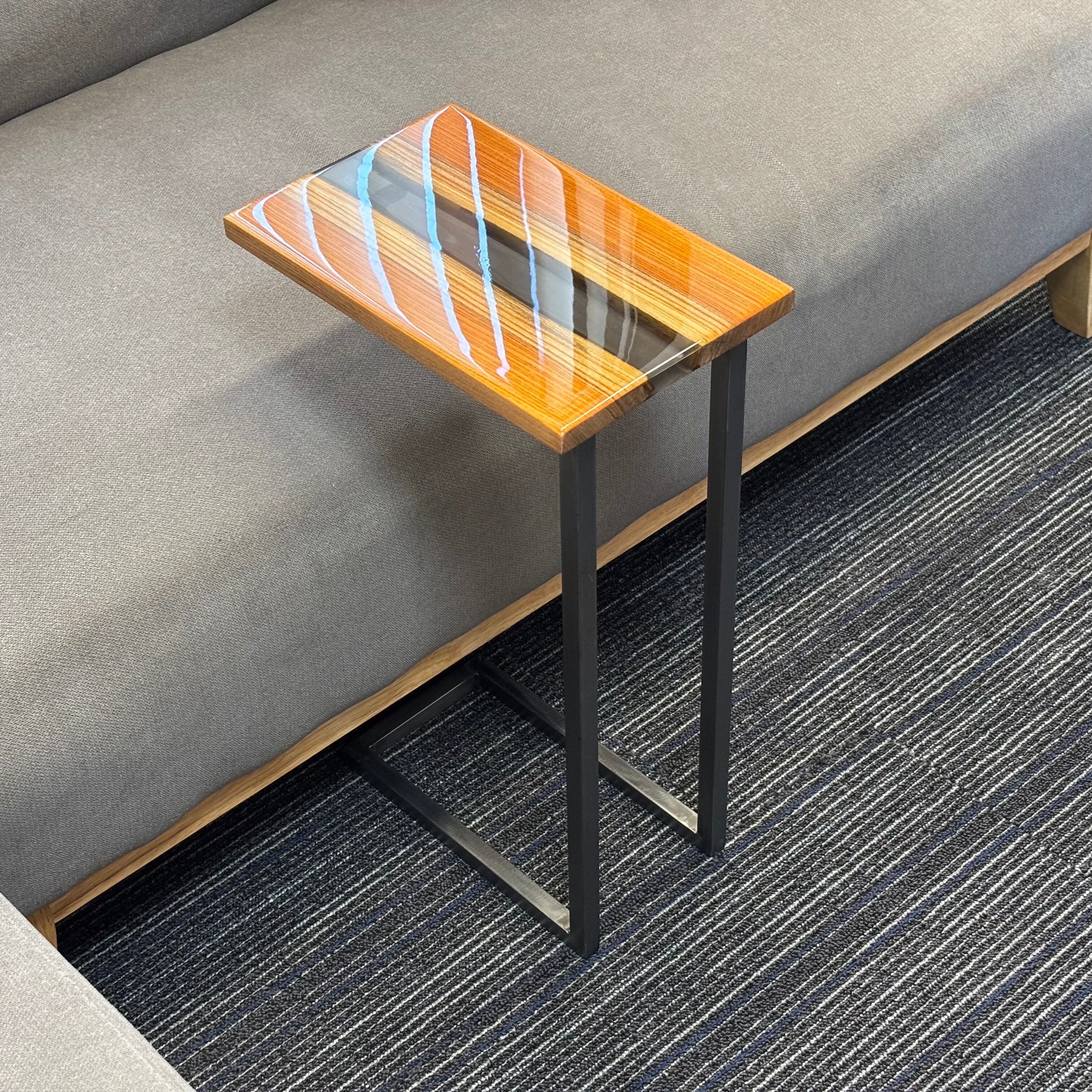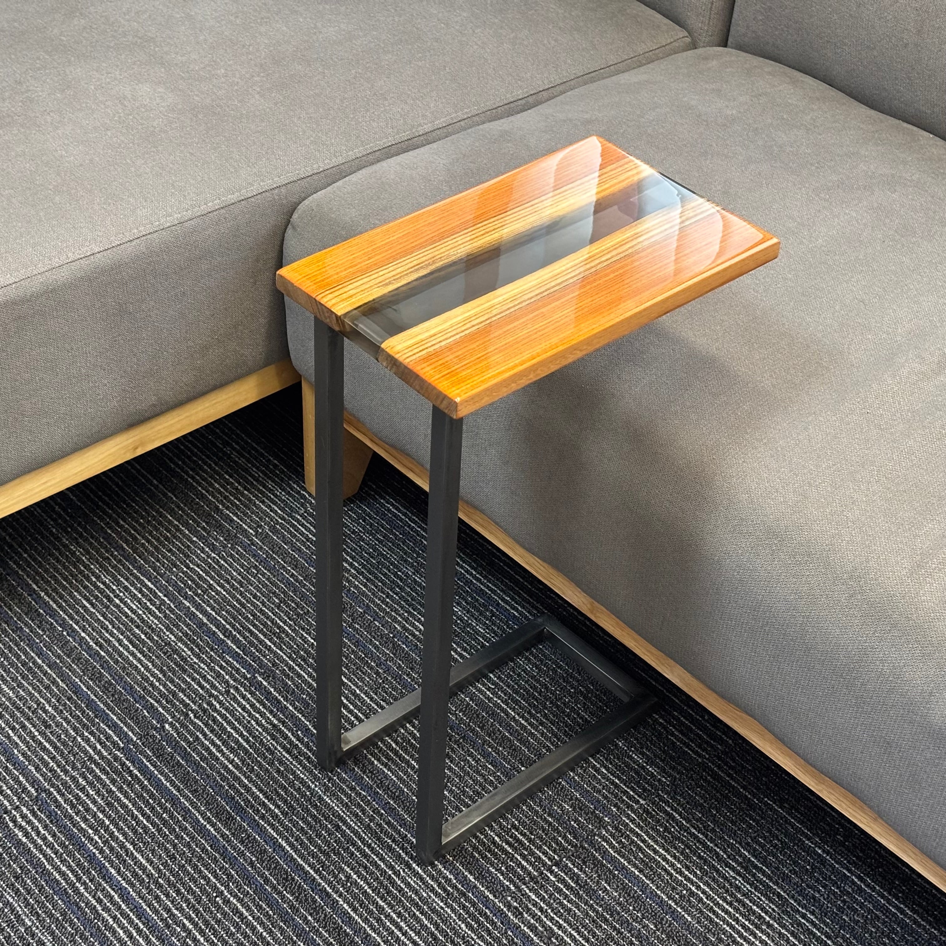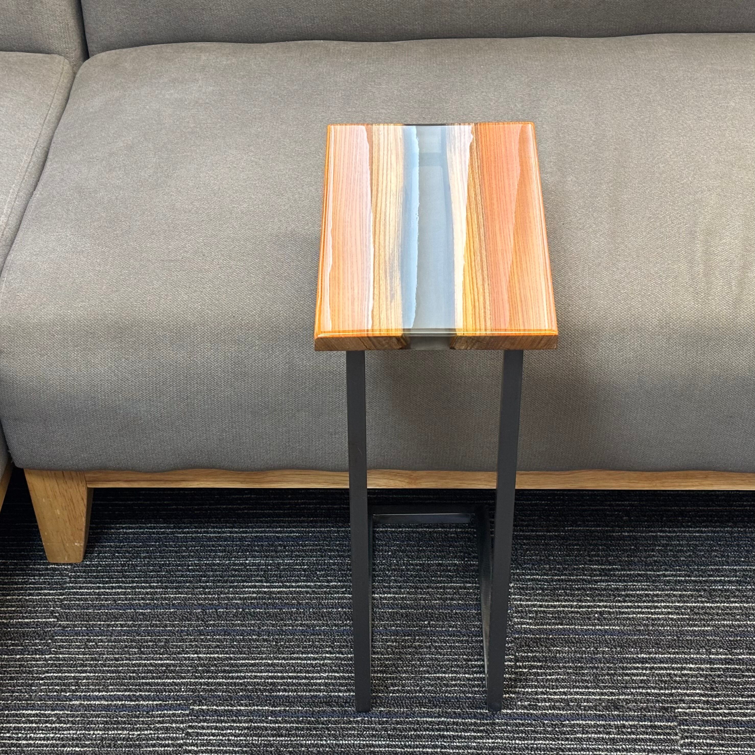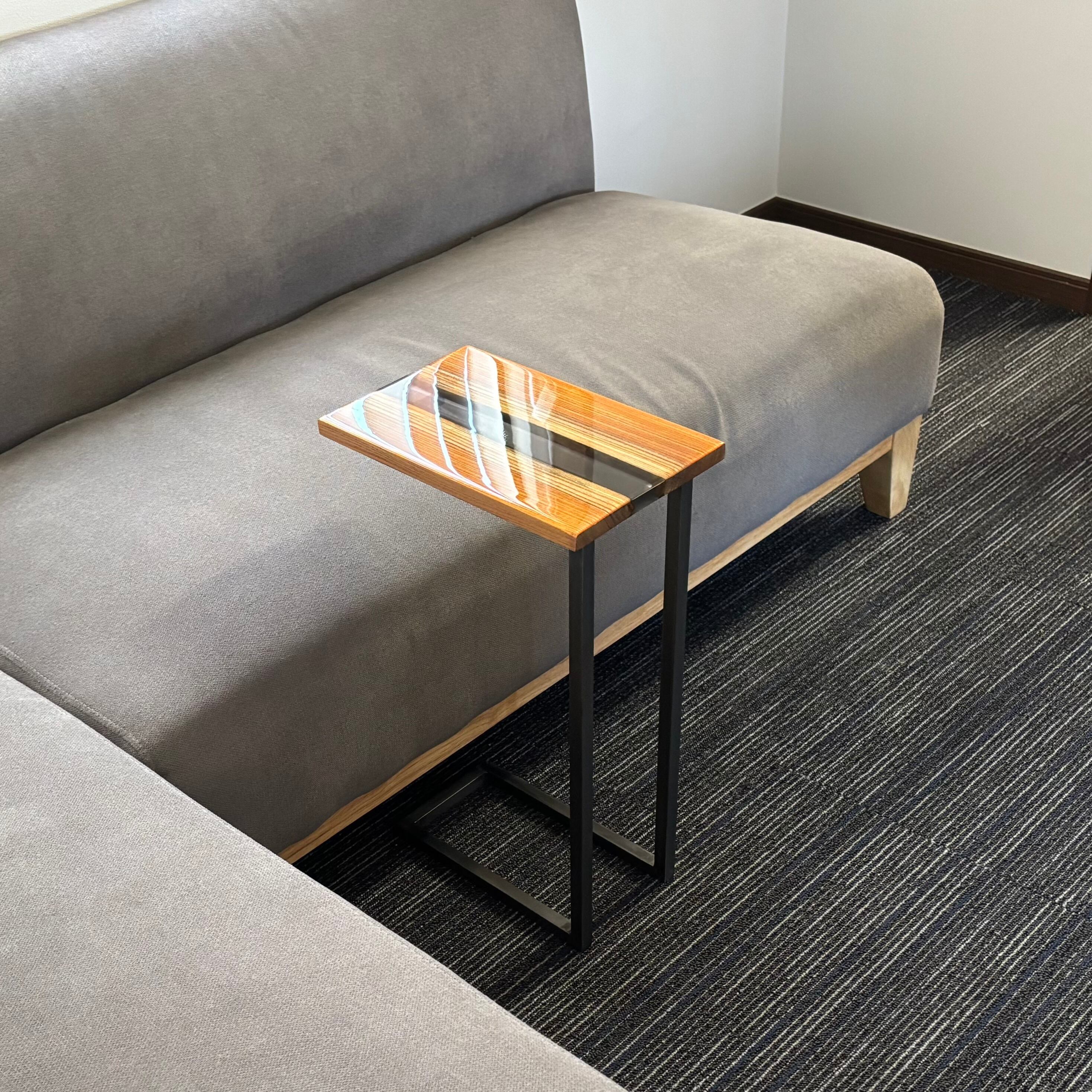 美しい木目を持つ木材と洗練された輝きを放つレジンで織りなすウッドレジン製のサイドテーブルです。小さな工房で丁寧に仕上げた一点物です。