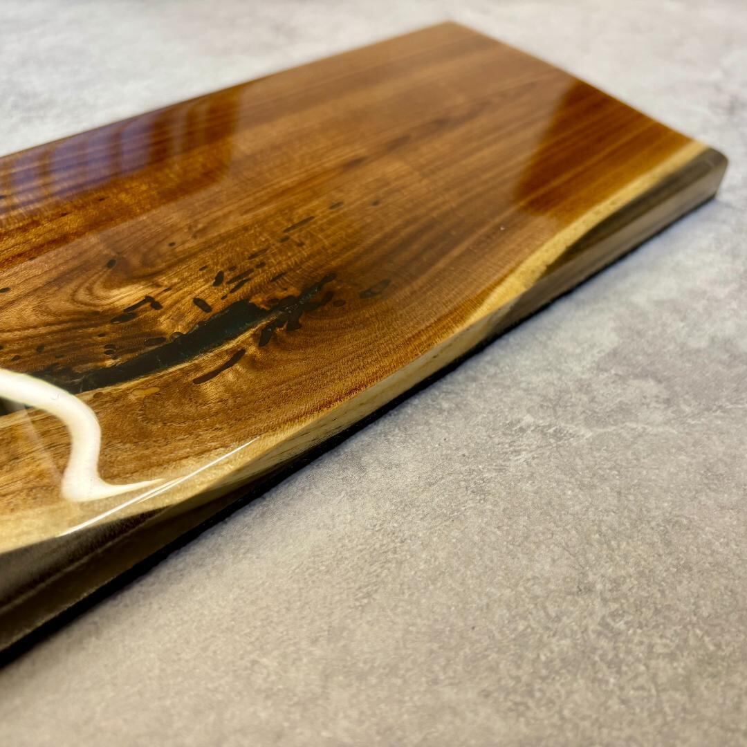 使用しているフローレスレジンは、アメリカ食品医薬品局(FDA)認定の食品グレード樹脂です。硬化後は無害・無毒・無臭で、直接食品を乗せても安全です。また、透明度が高く、耐久性や耐水性にも優れています。