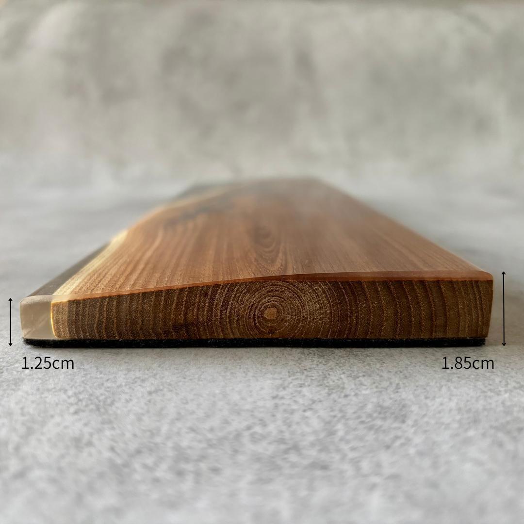 このアームレストには、無垢の木材とフローレスレジンを使用しています。表面はレジンでコーティングしており、水や汚れから木材をしっかりと保護。