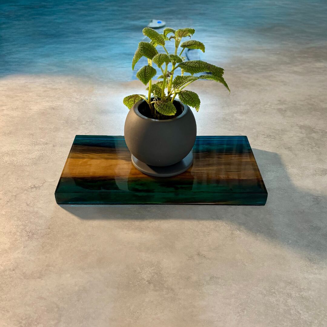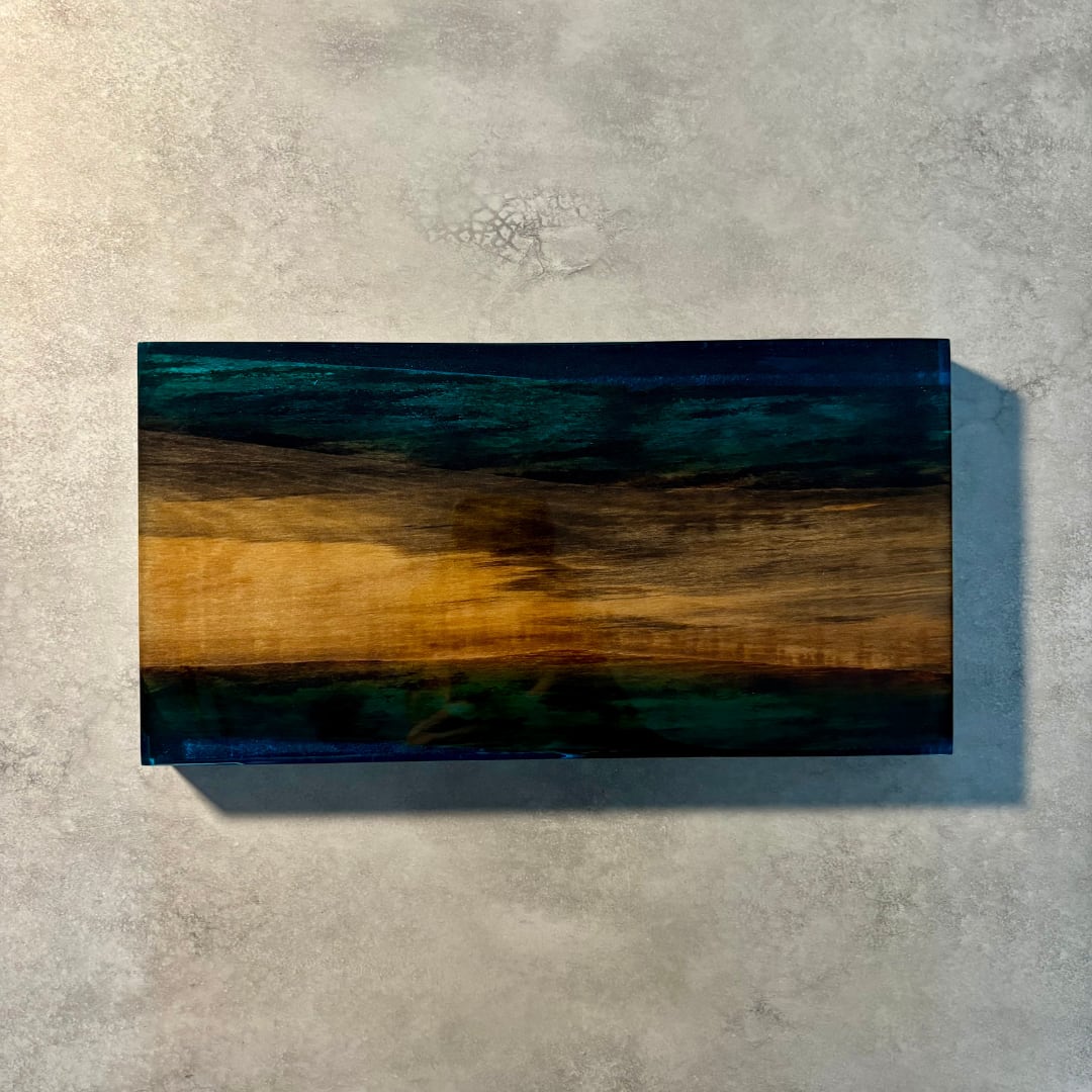 美しい木目を持つ木材と洗練された輝きを放つレジンで織りなすウッドレジン製の飾り台です。小さな工房で丁寧に仕上げた一点物になります。