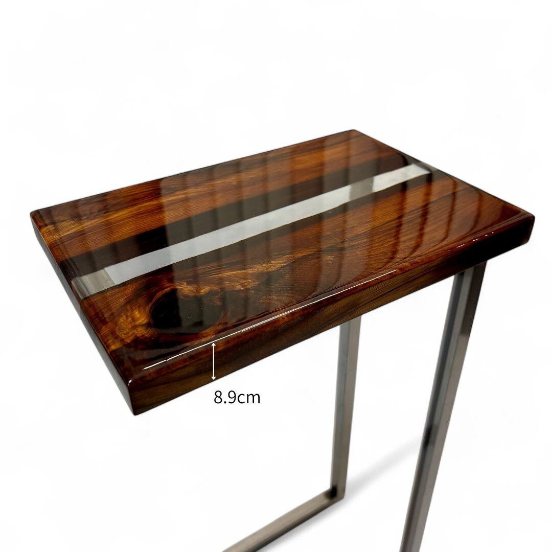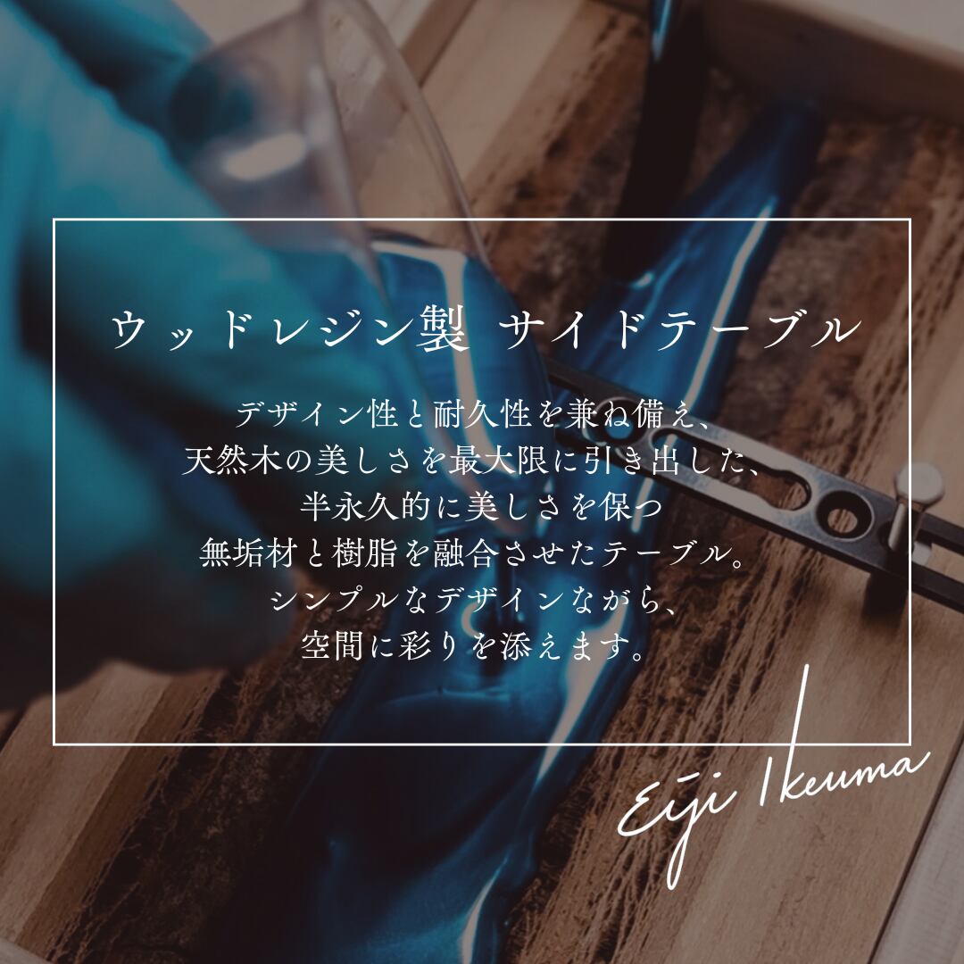 美しい木目を持つ木材と洗練された輝きを放つレジンで織りなすウッドレジン製のサイドテーブルです。小さな工房で丁寧に仕上げた一点物です。