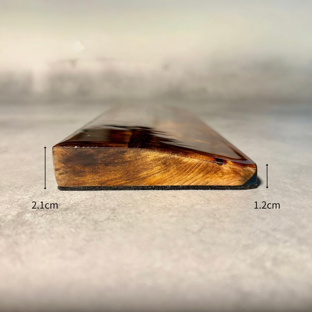 美しい木目を持つ木材と洗練された輝きを放つレジンで織りなすウッドレジン製のアームレストです。小さな工房で丁寧に仕上げた一点物になります。