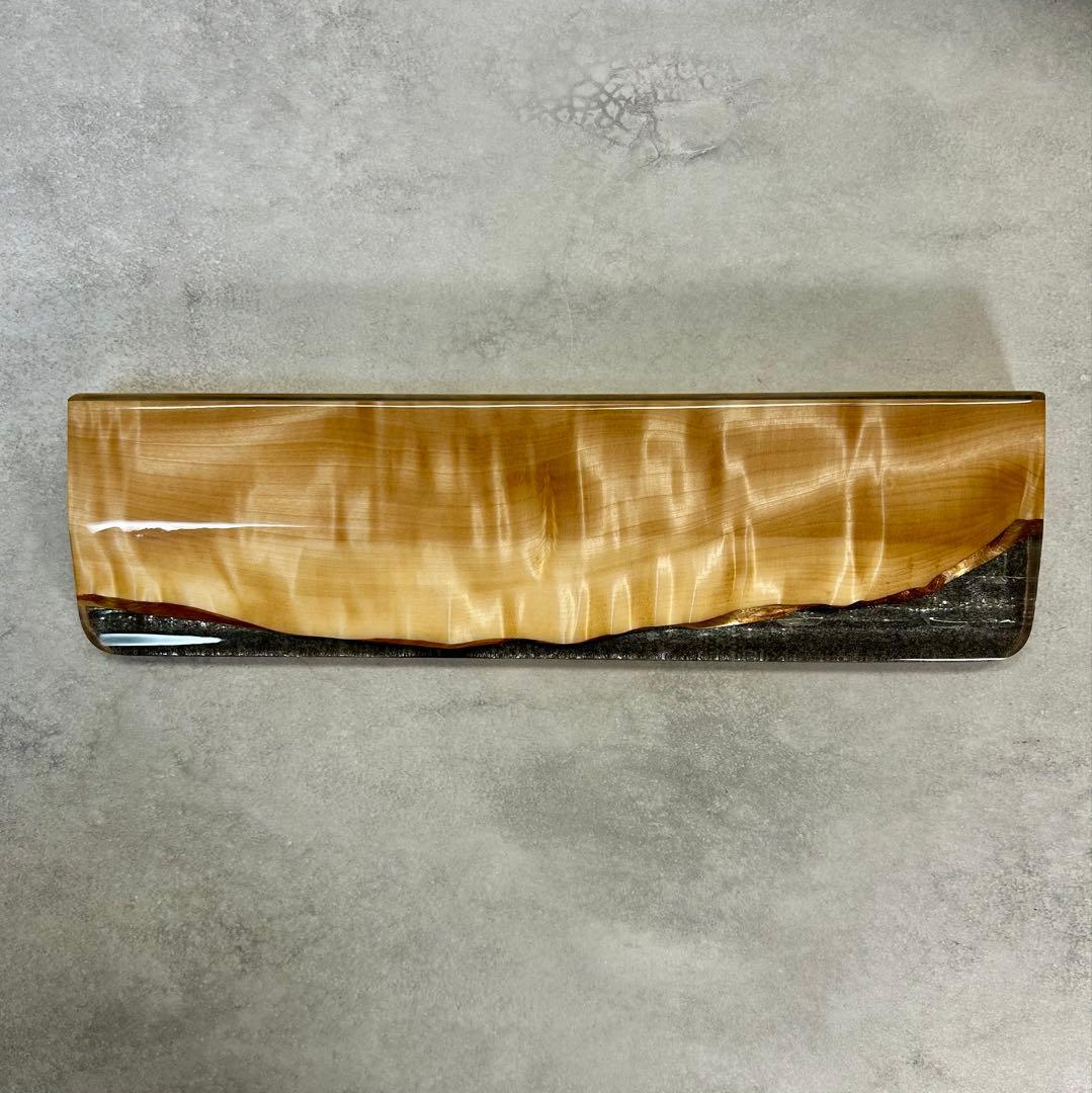 めずらしい杢目の栃の木で制作しました。おそらく、この杢目は「光明」と呼ばれるものだと思われます
