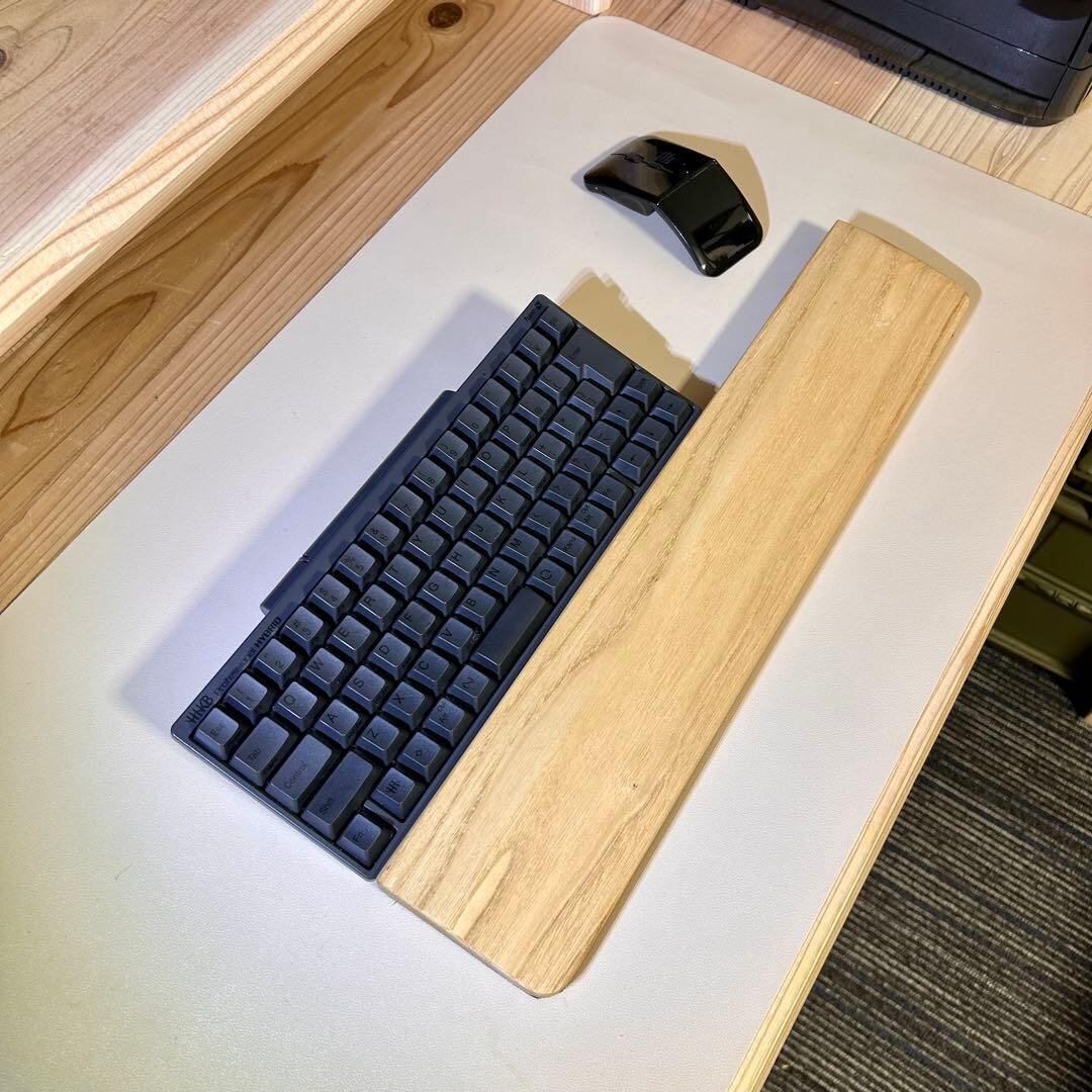 人の手に触れるパームレストは、経年によって木目の輪郭や模様がはっきりしてくる点も人気です。