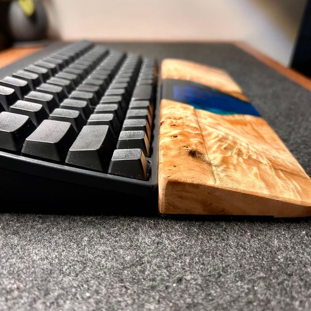 美しい木目を持つ木材と洗練された輝きを放つレジンで織りなすウッドレジン製のマウス用アームレストです。小さな工房で丁寧に仕上げた一点物になります。