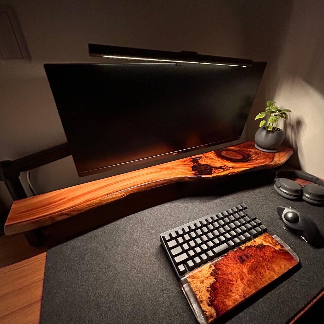 美しい木目を持つ木材と洗練された輝きを放つレジンで織りなすウッドレジン製のデスクシェルフです。小さな工房で丁寧に仕上げた一点物です。