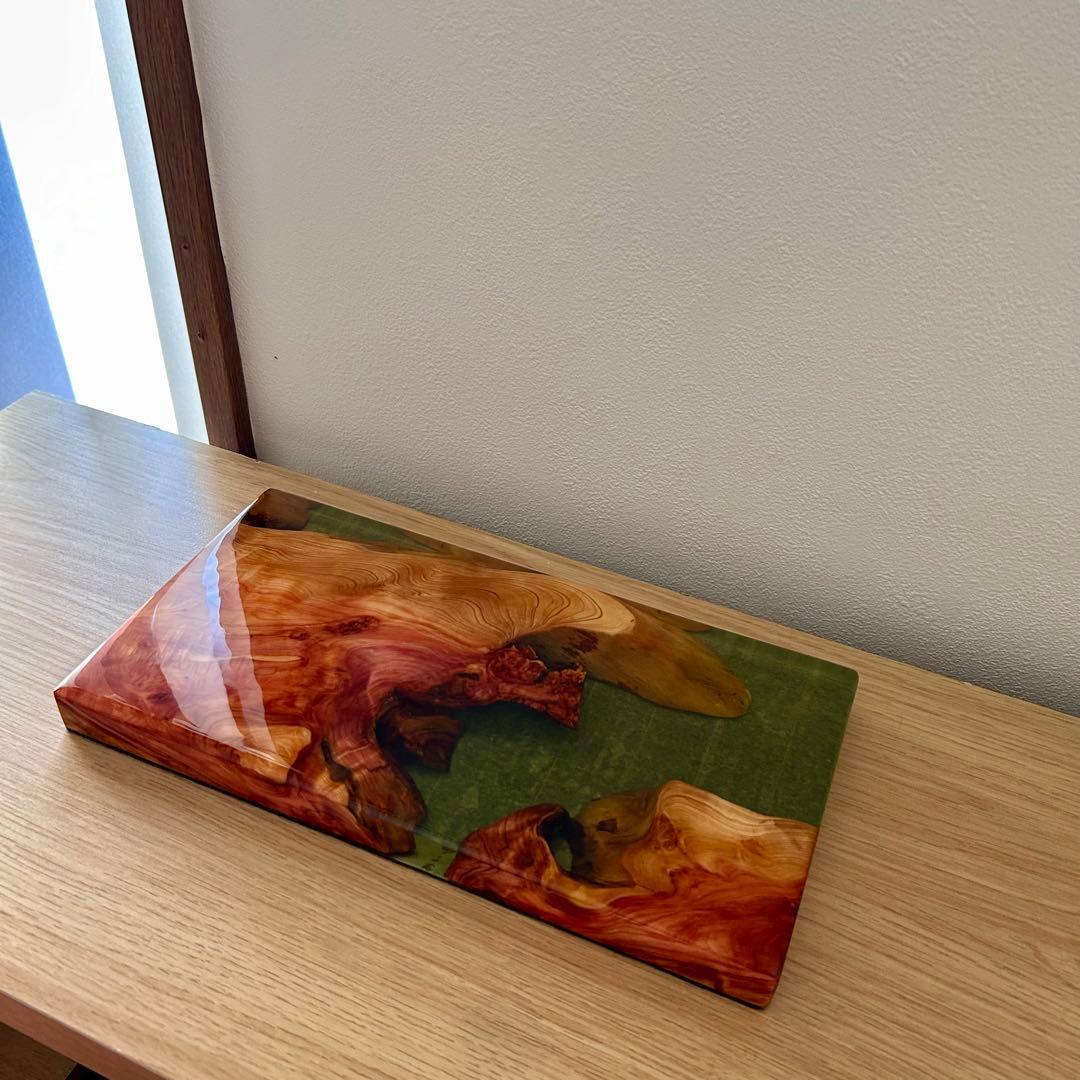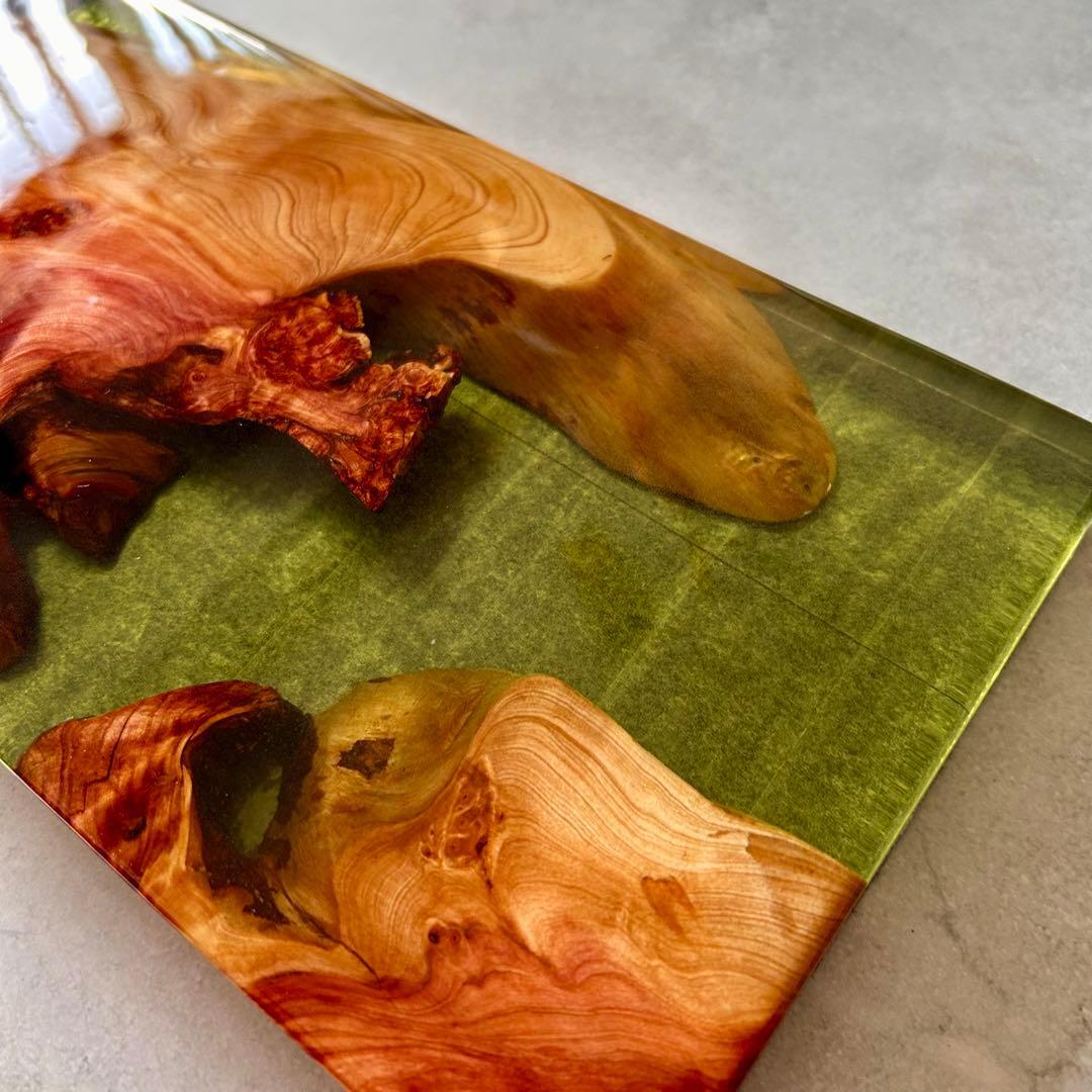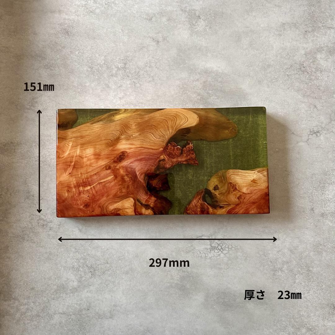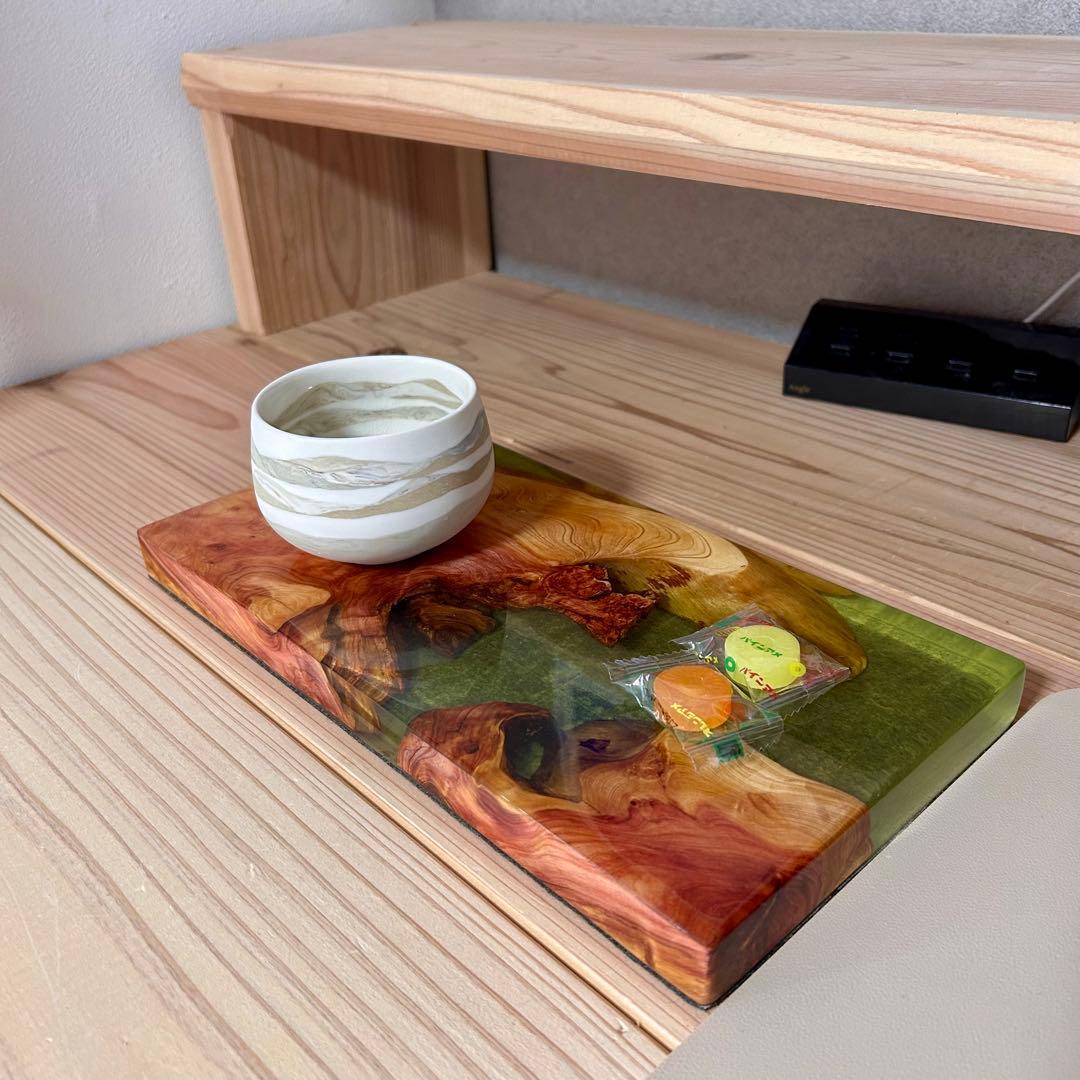 美しい木目を持つ木材と洗練された輝きを放つレジンで織りなすウッドレジン製の飾り台です。小さな工房で丁寧に仕上げた一点物になります。