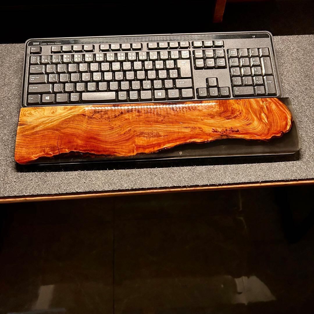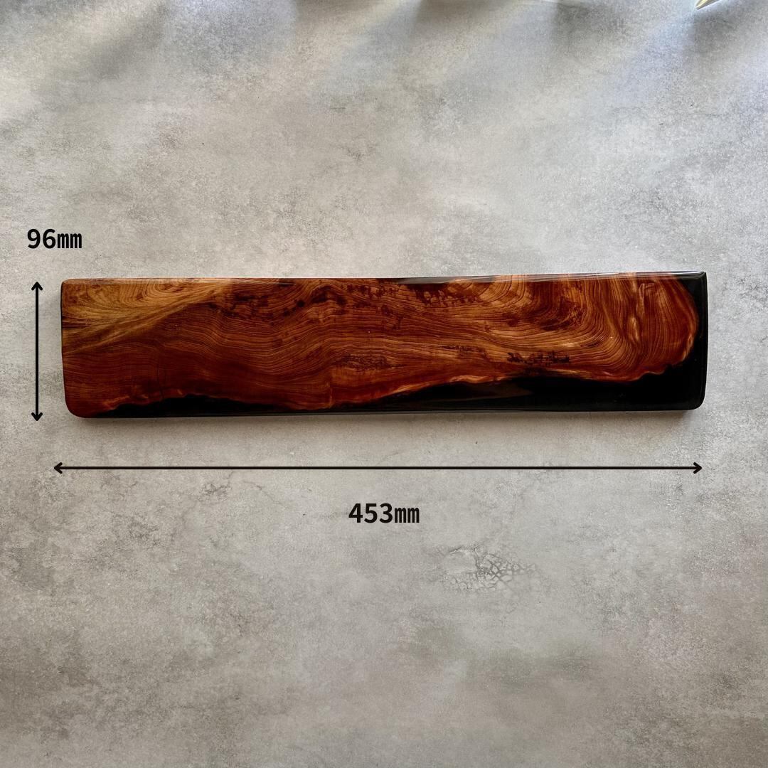 美しい木目を持つ木材と洗練された輝きを放つレジンで織りなすウッドレジン製のマウス用アームレストです。小さな工房で丁寧に仕上げた一点物になります。
