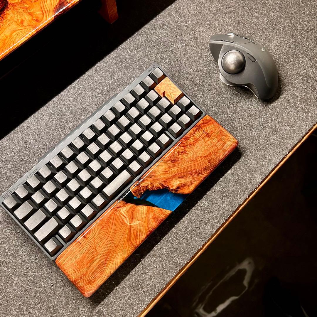 美しい木目を持つ木材と洗練された輝きを放つレジンで織りなすウッドレジン製のマウス用アームレストです。小さな工房で丁寧に仕上げた一点物になります。