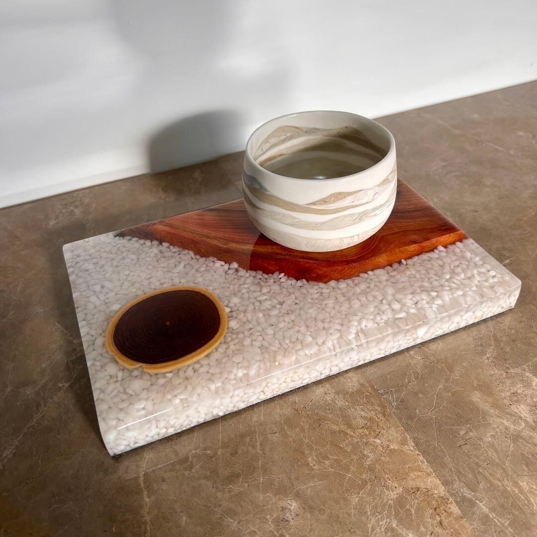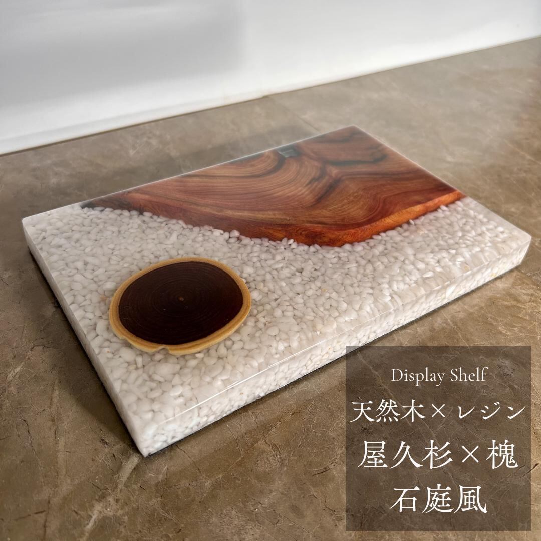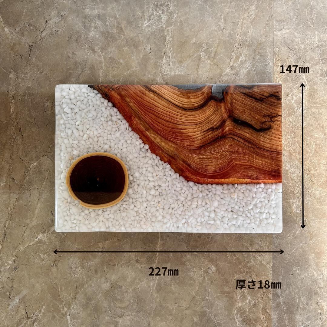 美しい木目を持つ木材と洗練された輝きを放つレジンで織りなすウッドレジン製の飾り台です。小さな工房で丁寧に仕上げた一点物になります。